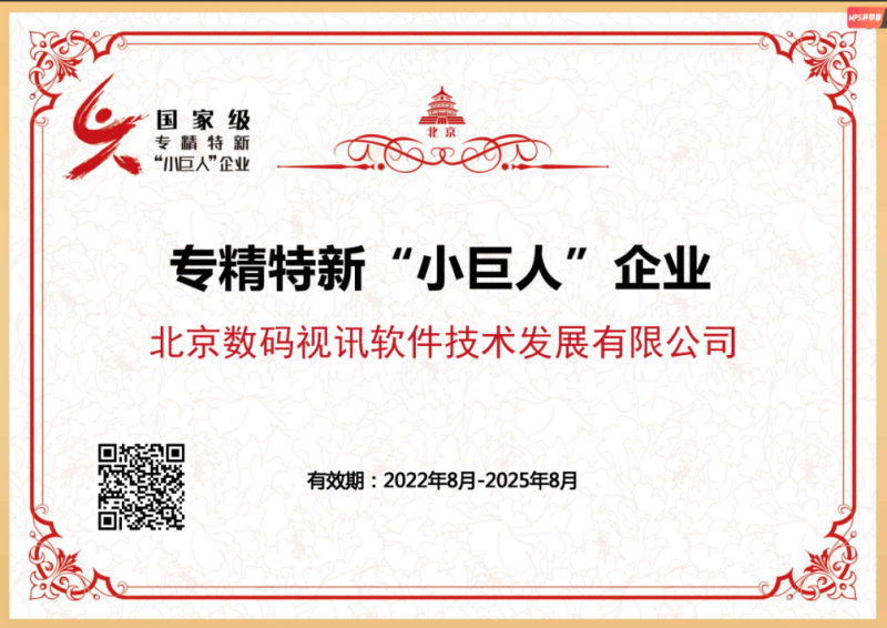 数码视讯获北京市重点“小巨人”企业高质量发展奖补资金支持项目